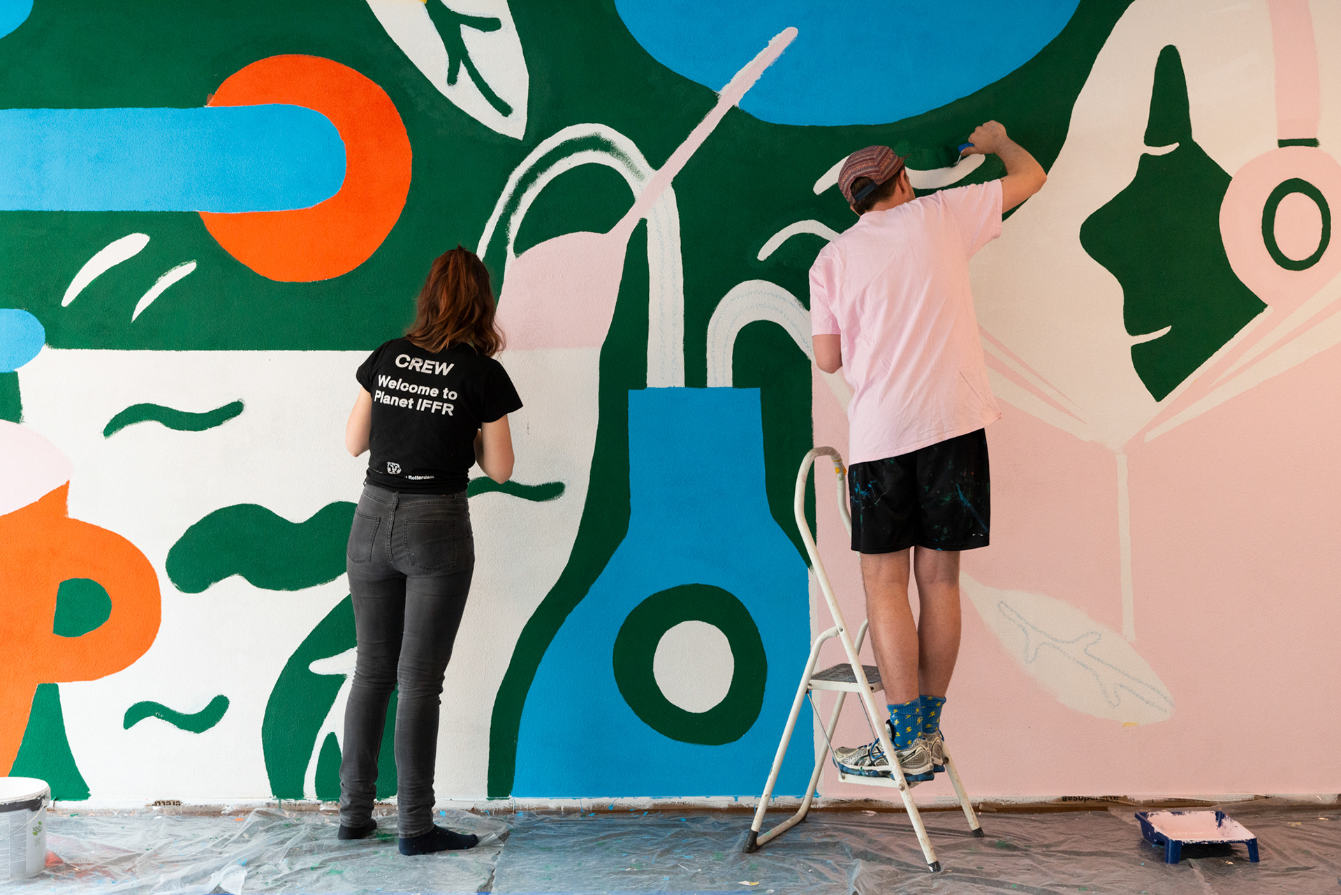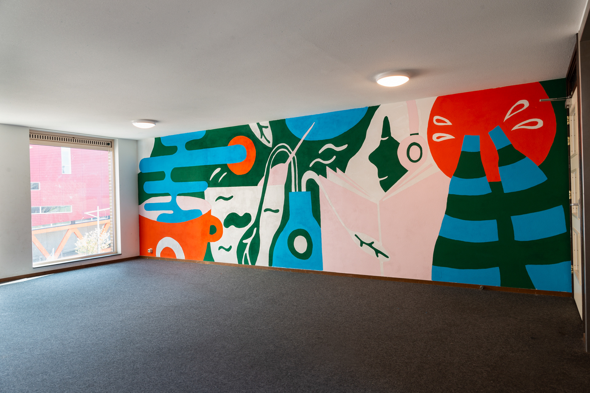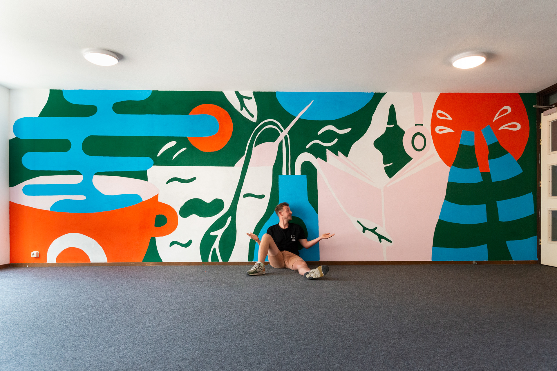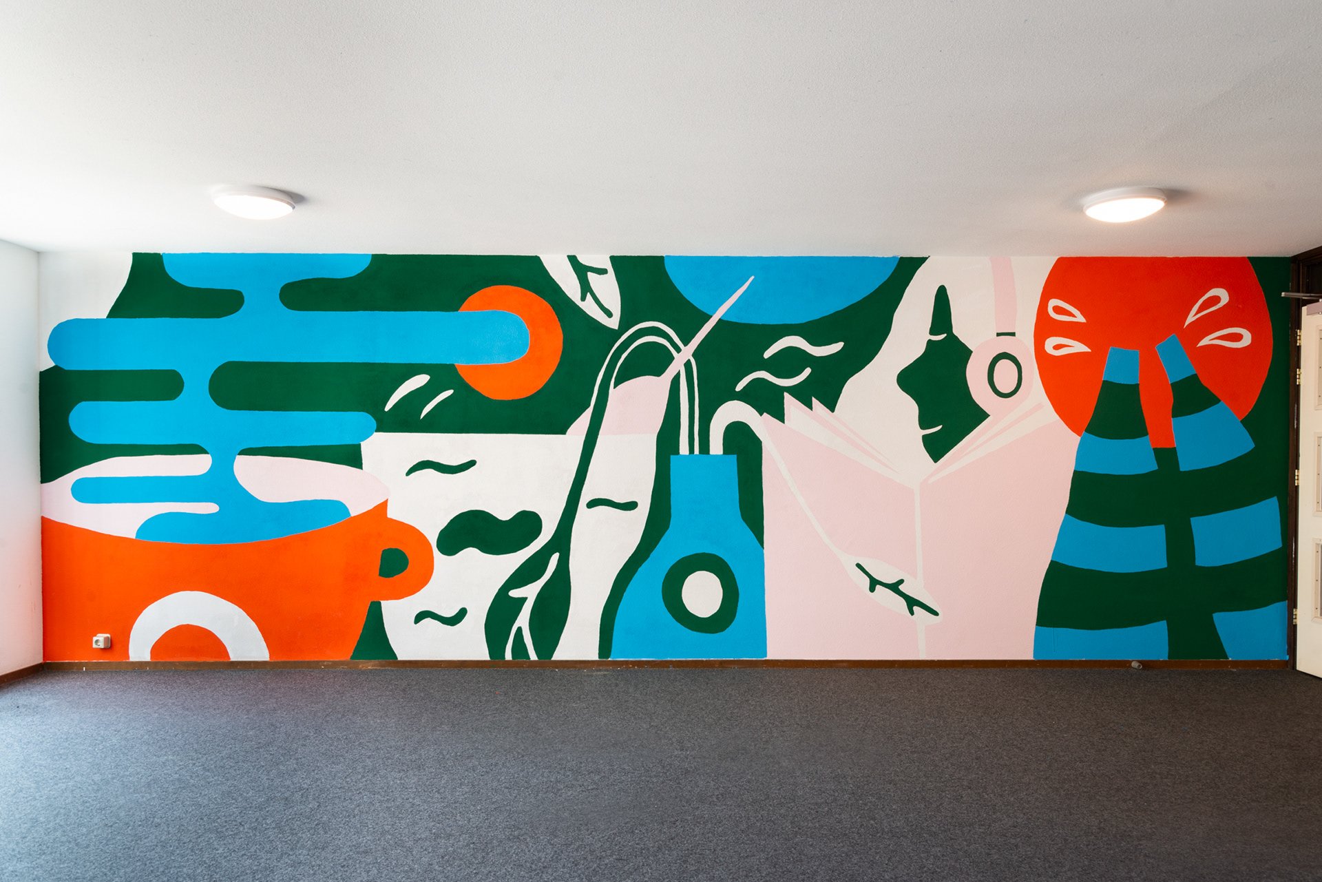 Commisioned by SSH Rotterdam. This design aims to reflect normal day life of residents living in the building where this painting exists. You start the day with a good cup of coffee or tea and when the day is over it is time to cheers on all things you accomplished that day.